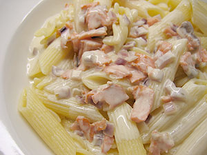 Bidde Pasta med Laxsås idag. Tog lite allt möjligt jag hittade i kylskpåpet och det vart väldigt mumsigt.